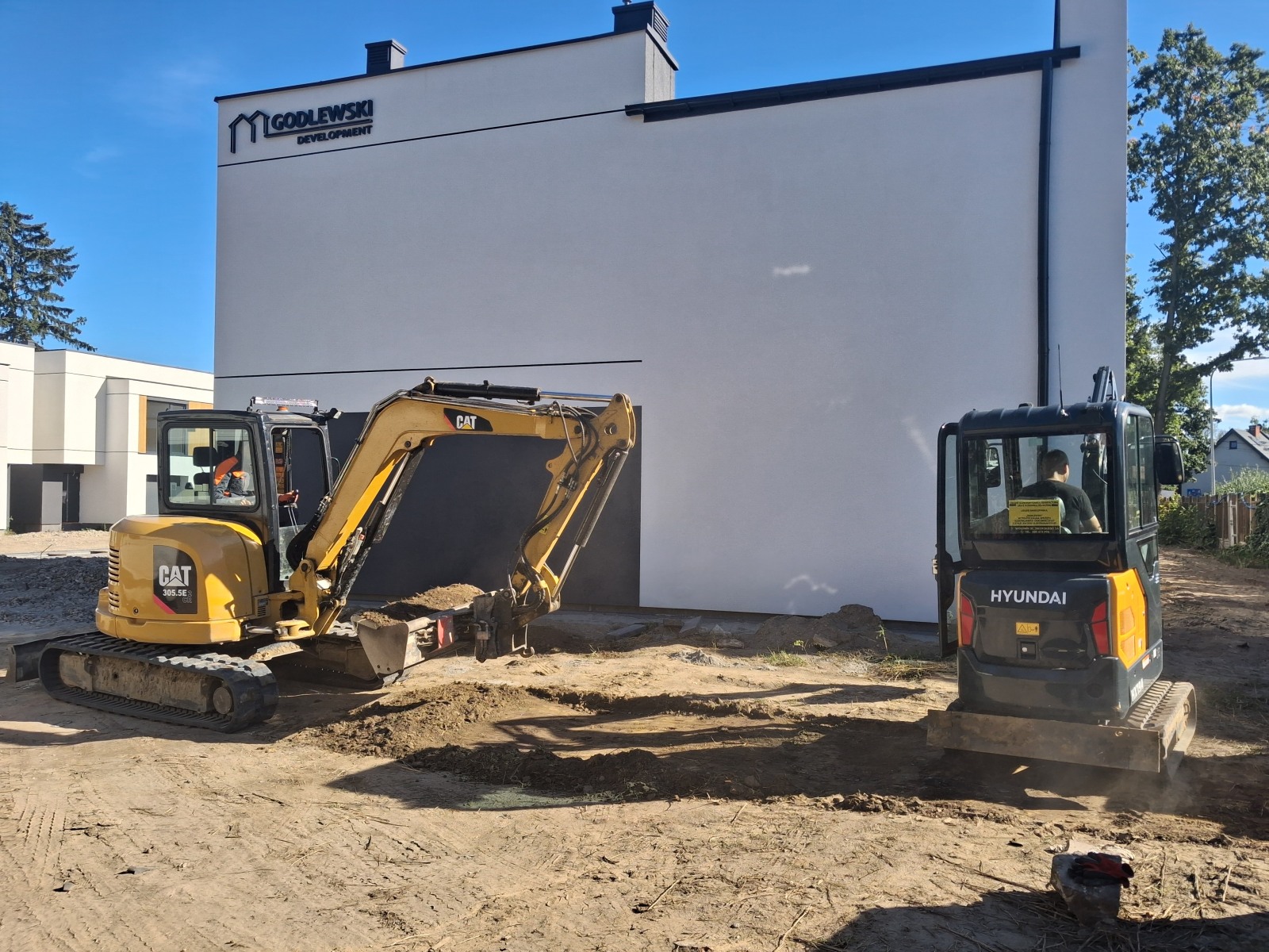 - Kopanie fundamentów – solidne i szybkie wykonanie wykopów pod domy, garaże czy hale.